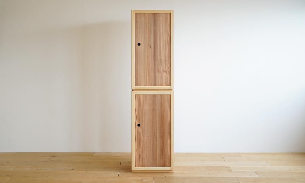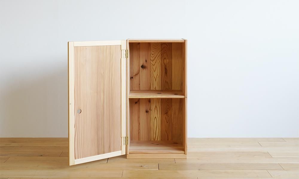 万能に使える人気の2段ボックスに、扉を付けました。爽やかな香りと、優しい手触りが心地よい、国産の杉の木を使用。 ※大きな節穴が入ることもあります。 子供部屋でもリビングでも似合うシンプルデザイン価格も今回限りの大特価!数量限定で販売です!